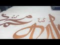 There are subtle variations for each sizes of this artwork. Most notably is that the smallest sizes come as a single piece (the shadda being connected to the main lettering) while larger sizes come as two pieces (as the shadda is separated from the main lettering).